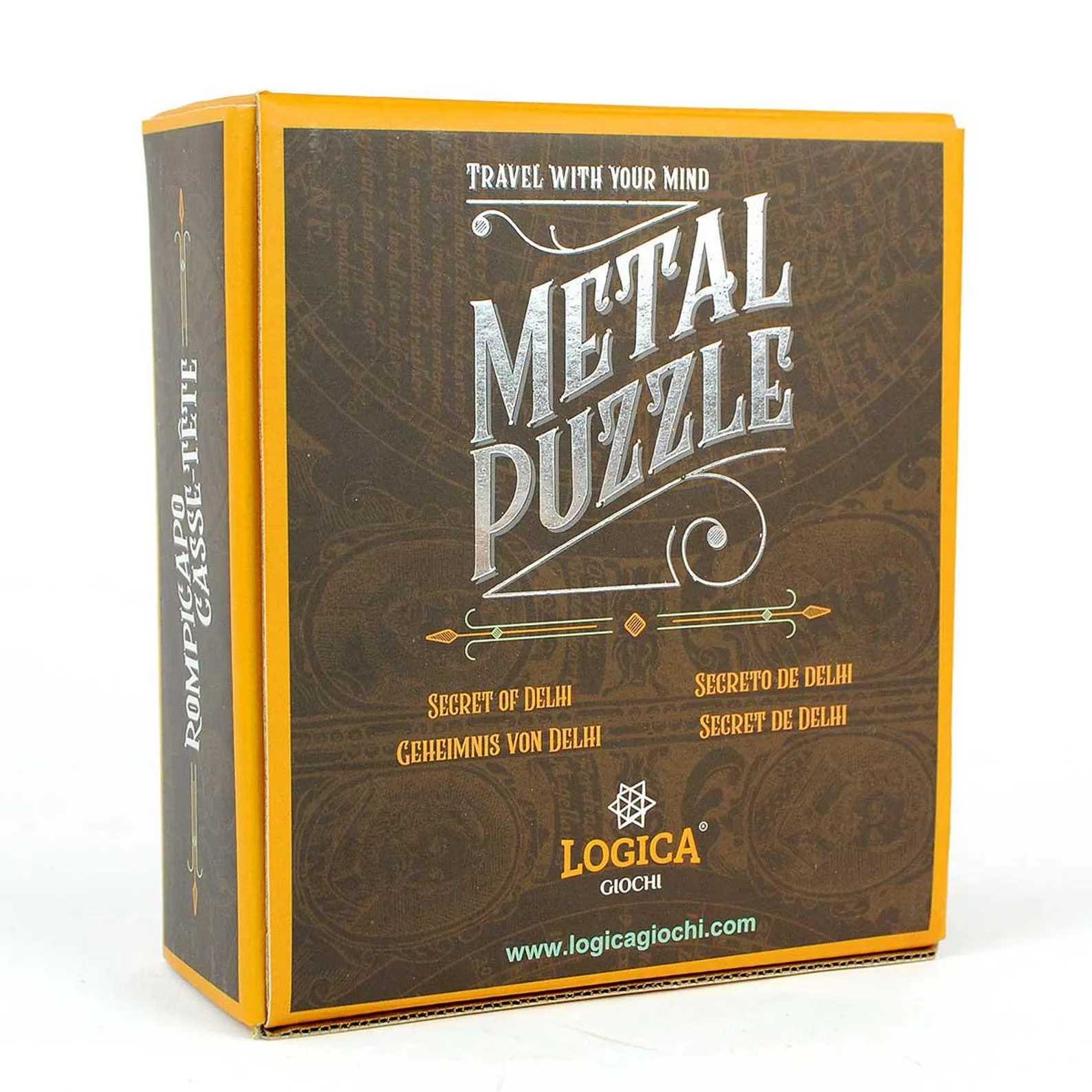 Delhi Inspired Metal Travel Padlock Puzzle is a decorative padlock style brain teaser crafted from solid metal. At first glance it looks like a traditional travel lock, with a curved shackle and compact body. Closer inspection reveals that the mechanism does not open with a regular key or code, but instead relies on a specific sequence of moves.