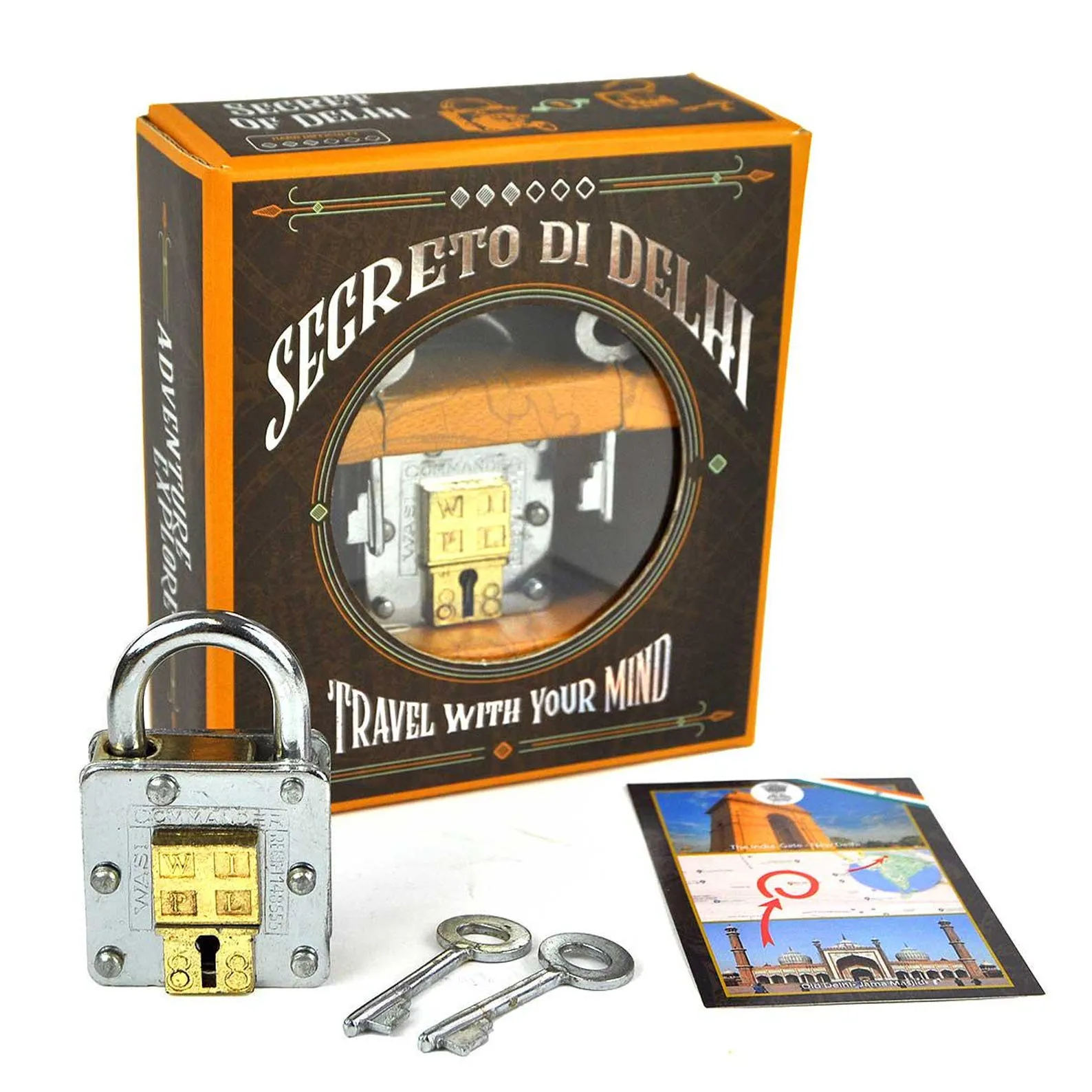 To release the shackle, the user must slide or rotate small components in the correct order, paying attention to how each step changes the internal alignment. The difficulty level is intended to be challenging without being impossible, making it suitable for adults and older teenagers. Delhi Inspired Metal Travel Padlock Puzzle can rest on a desk, shelf or travel themed display when not in active use.