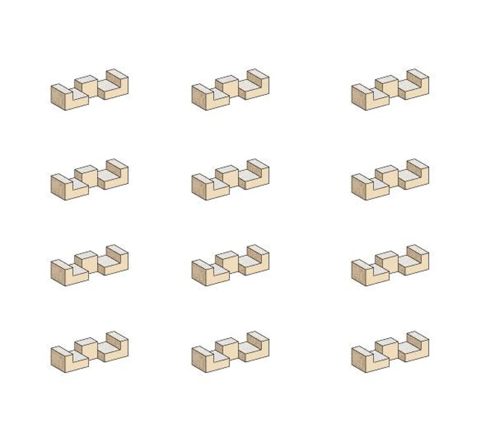 When not in use, the completed cubes can be displayed together on a shelf, desk or sideboard. Their varied forms create an attractive group arrangement, adding texture to the room while reminding viewers of the logical challenge they contain.